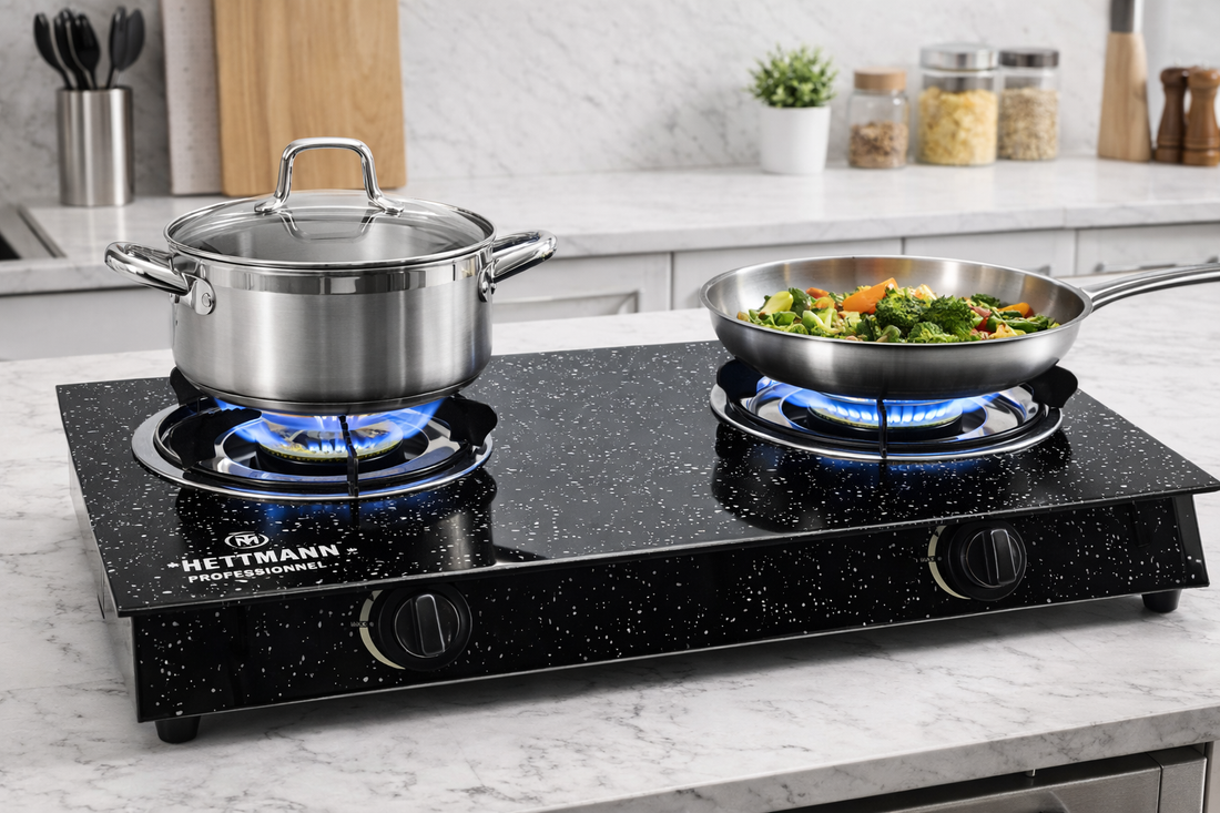 Réchaud à Gaz Vitrocéramique Métal acier Inoxydable - 2 brûleurs - Réchaud Gaz Portable
