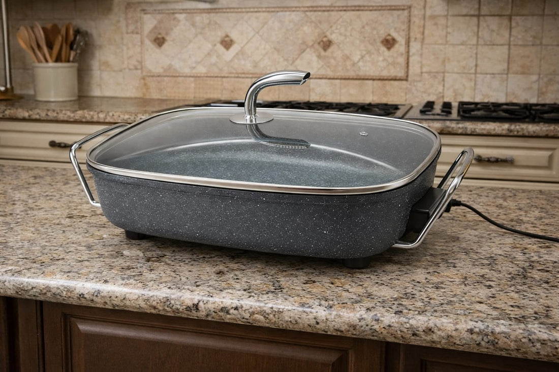 Poêle marmite électrique avec couvercle - PIZZAPAN - 1500 Watts, Revêtement Anti-Adhésif, 6 litres