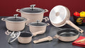 - ✅ Batterie de cuisine complète 13 pièces – Ensemble en fonte d’aluminium comprenant 3 marmites Ø20/24/28 cm, 1 casserole Ø16 cm et 2 poêles Ø24 cm et Ø28 cm, avec couvercles en verre et manches amovibles pour un rangement facile.