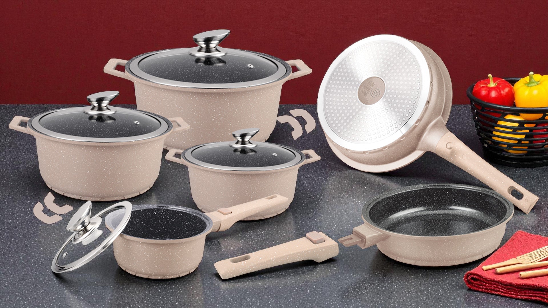 - 🍳 Manches & manchons amovibles ingénieux – Manches amovibles sur poêles et casserole pour un rangement compact + manchons silicone amovibles pour marmites, adaptés au passage au four et offrant une sécurité optimale.