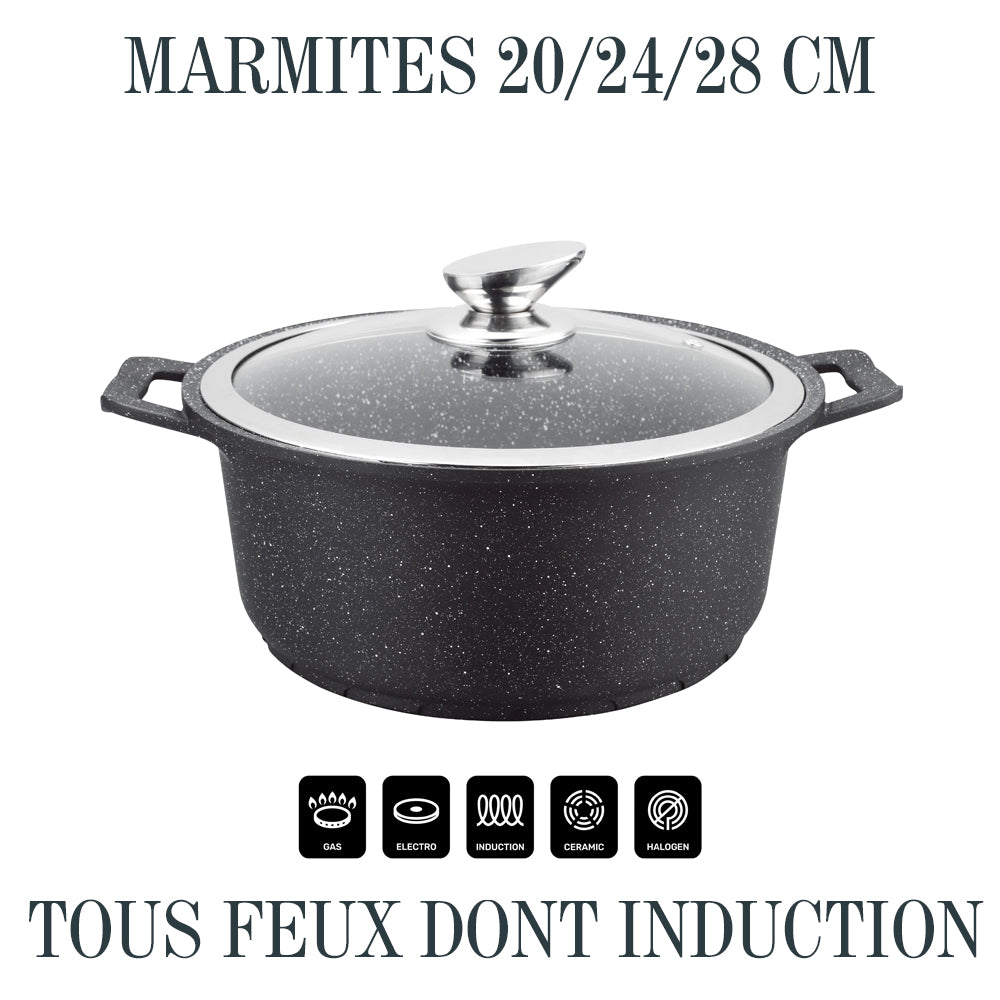 - ⚡ Compatibilité tous feux dont induction – Fond diffuseur ultra-résistant compatible gaz, électrique, vitrocéramique et induction. Chauffe rapide et répartition homogène de la chaleur pour des résultats parfaits à chaque cuisson.