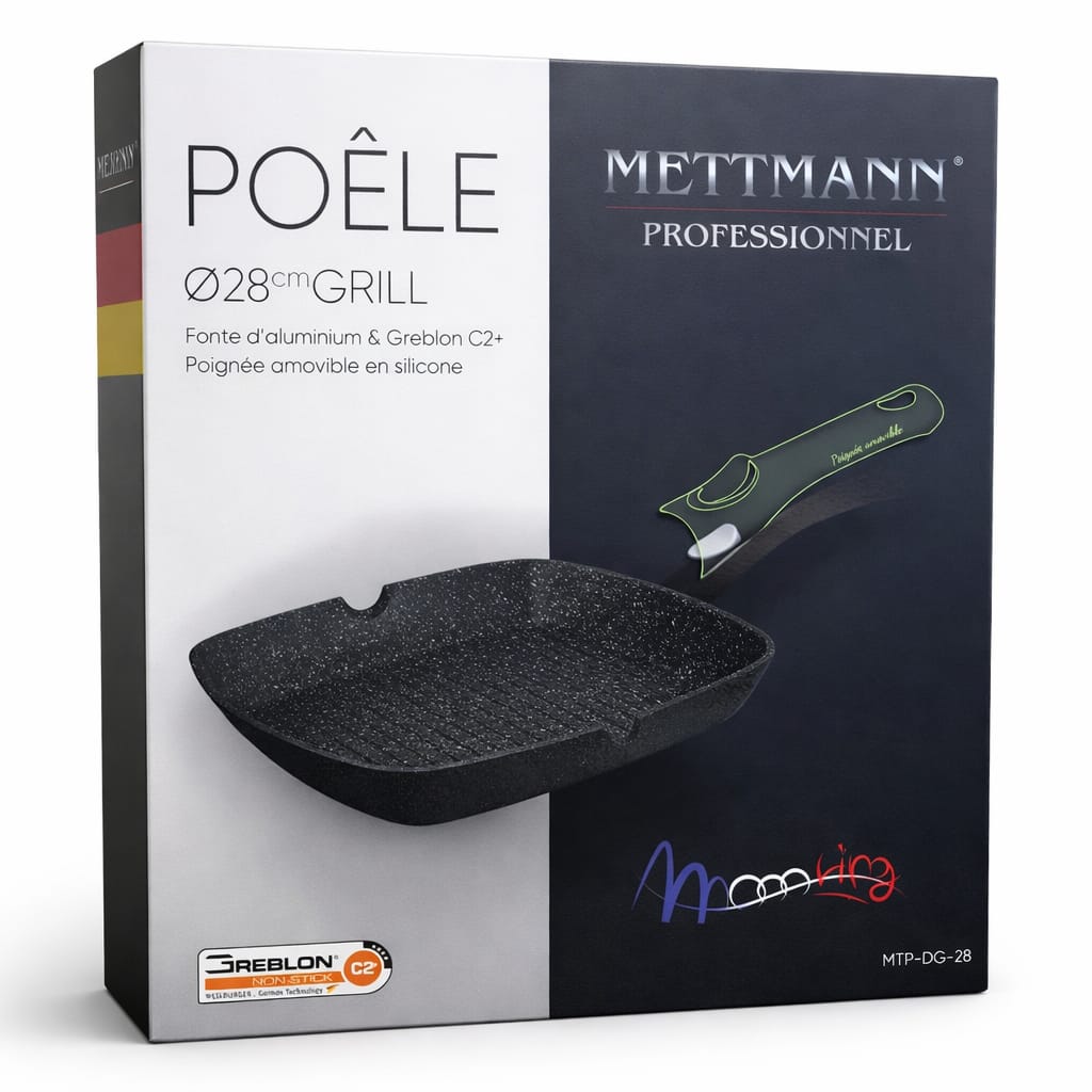 Cuisinez comme des pros avec cette Poêle grill manche amovible 28 cm Mettmann Professionnel revêtement marbre. Le design léger et durable est composé d’un revêtement antiadhésif, passe au lave-vaisselle et est antibactérien. Ce produit est fabriqué en matériel de haute qualité. Il se réchauffe rapidement, qui plus est très économique en énergie. Grâce à son revêtement antiadhésif vous avez besoin de moins d’huile, cela rend vos plats saints afin de vous garder en bonne santé.
