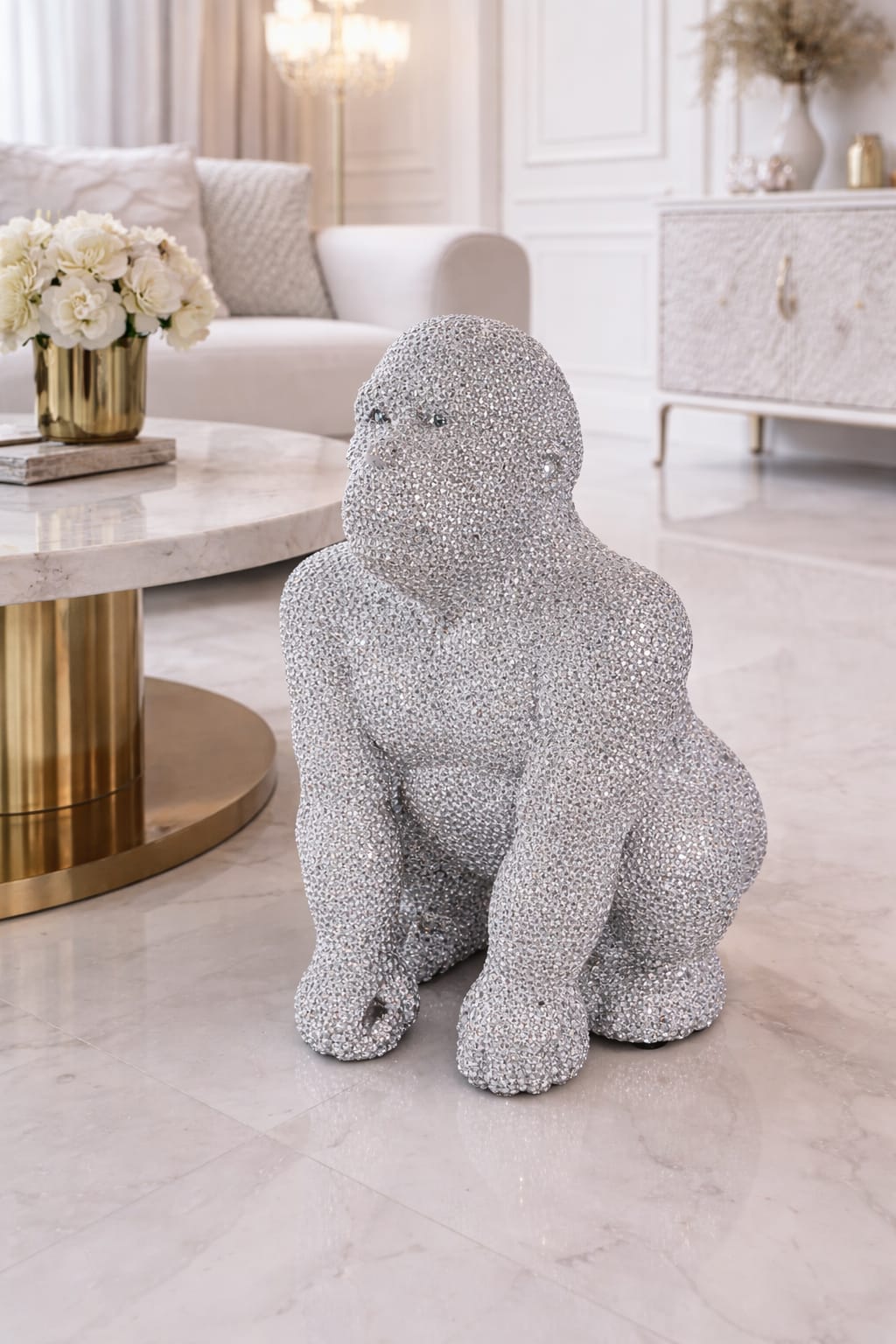 Apportez une touche de prestige et de caractère à votre intérieur avec cette magnifique sculpture de gorille au design contemporain et à la finition scintillante. Recouverte d’un effet cristallin éclatant, elle capte la lumière sous tous les angles et devient instantanément une pièce maîtresse de votre décoration.