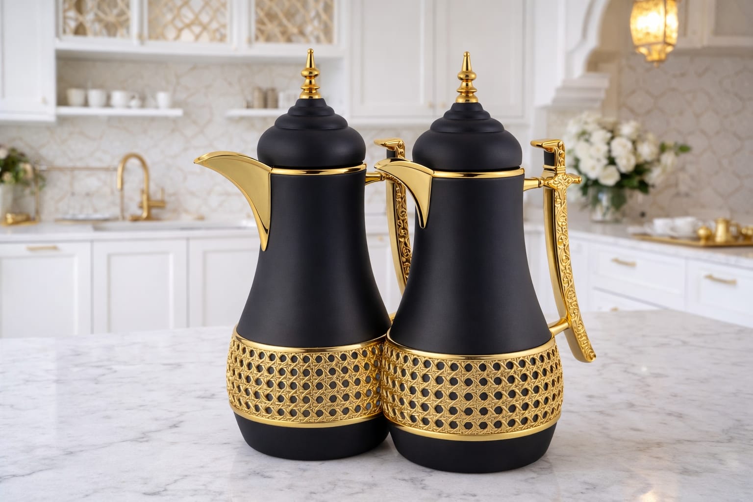 Set de 2 Thermos de Luxe – Élégance Orientale & Performance Premium Apportez une touche de raffinement et de prestige à votre table avec ce magnifique set de 2 thermos haut de gamme, inspirés du style oriental. Leur design élégant, associé à des finitions dorées luxueuses, en fait un choix parfait aussi bien pour un usage quotidien que pour recevoir vos invités avec classe. Chaque thermos est doté d’un intérieur en verre de haute qualité, garantissant une excellente conservation de la température et une pureté parfaite des saveurs. L’extérieur est fabriqué en plastique premium robuste, offrant une excellente résistance tout en conservant une sensation de solidité et de poids, symbole de qualité supérieure. 🌟 Caractéristiques principales : Lot de 2 thermos – idéal pour servir boissons chaudes et froides en même temps Intérieur en verre isolant – conserve la chaleur et le froid jusqu’à 18 heures Extérieur en plastique premium épais et résistant – durable et élégant Design oriental luxueux avec finitions dorées et détails raffinés Grande capacité : 1,0 L chacun – parfait pour le thé, le café ou les boissons fraîches Poignée ergonomique pour une prise en main confortable et un service facile Boîte cadeau incluse – idéal pour offrir lors d’occasions spéciales 🏡 Parfait pour : Réceptions et moments en famille Service du thé, café arabe, café ou boissons fraîches Cadeau élégant pour mariages, fêtes et événements Ajoutez une touche de sophistication à votre cuisine ou à votre table avec ce duo de thermos aussi beaux que performants.